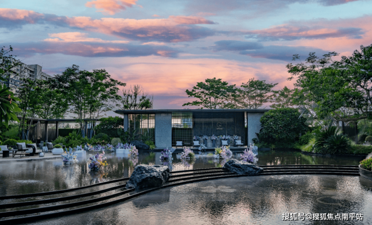 “一廊”,指“风雨连廊”。“二水”,指镜水花园和嬉水乐园两个带有水景的花园。三大堂,指主入口会所的归家大堂、楼栋的入户大堂和车库大堂。五区,是指植物私塾、体测天地、轻量运动场、水景会客厅、红叶睦邻五个活动空间。中国传统“连廊”与大堂、花园、五区共同构建了一个完整的闭合空间,让业主能够完美避免阳光的暴晒和大雨的淋湿。