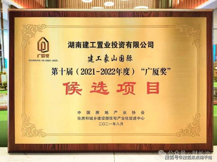2021年7月30日,建投·象山国际成功入选(2021-2022年度)“广厦奖”第二批候选项目,也是湖南唯一入选该批候选名单的项目。日前,更入选湖南省住建厅《湖南省首批住宅物业住房品质楼盘创建名单》,省内仅7家入选。继受到市场追捧后,再获行业最高荣誉,政府权威认可。