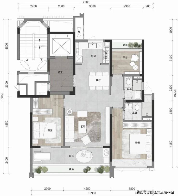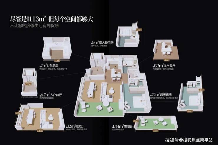 户型产品分113/128/143三个面积段,均为一梯二户板式楼型户户尊享私家独立电梯,标配大面宽景观阳台,高附加赠送率。