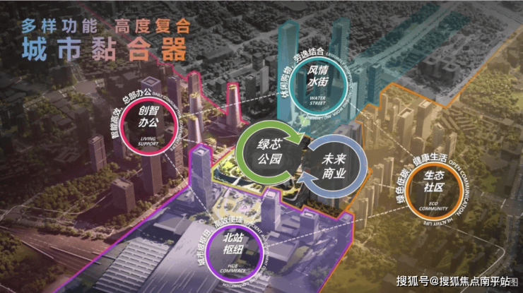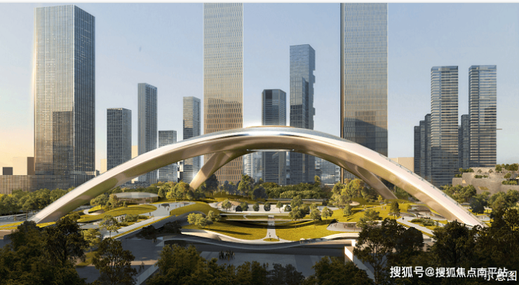 深圳北站总部基地:作为深圳七大总部基地之一,以高标准缔造,形成多元复合的国际会客厅。规划双芯三谷、城市一体化空间结构,以城市超核为中心,打造全新体验的城市新封面,成就湾区未来枢纽超级地标。