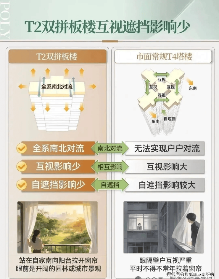 不同于塔楼,项目全板楼设计,实现户户南北对流,避免对视,保障业主居住隐私。