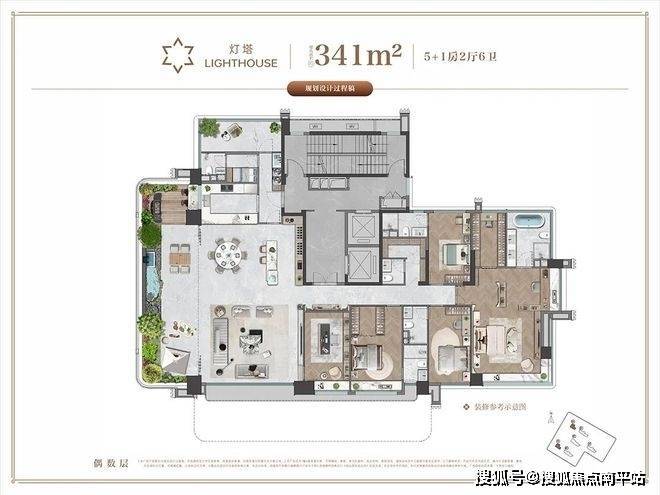 4+1室2厅3卫,约3.3米层高,同样做到 类独梯入户,提升归家的仪式感。