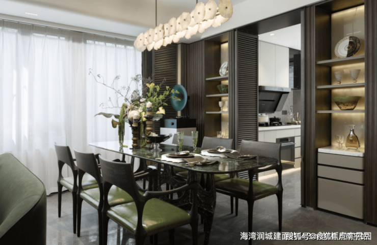 不同于千篇一律的住宅楼,海湾润城的社区规划藏着设计师的巧思:首层局部米白色仿石砖,外墙大面浅灰色和深灰色涂料,仿佛孩童随手勾勒的简笔画。约140平米的方舟酒廊以下沉式卡座设计,营造围炉夜话的温馨氛围。穿过风雨连廊后的森光水院,将自然元素引入室内,臻选蓝钻仿石砖切割自然起伏的涟漪纹理,四周移栽三株冬青树进行呼应,构建"水境入林"的雅致意境。