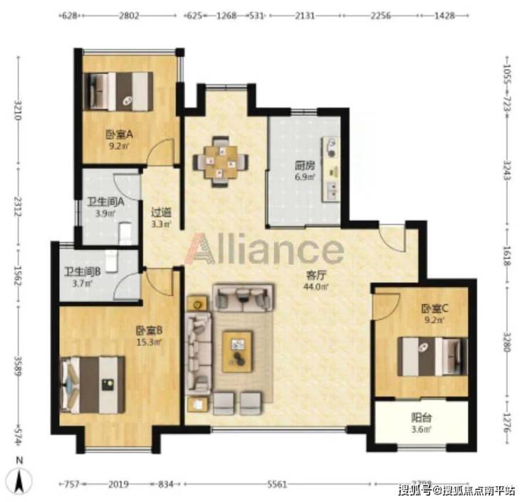 3、客厅南侧,规划了2.6✖️5.6,约15平灵动可变阳台。