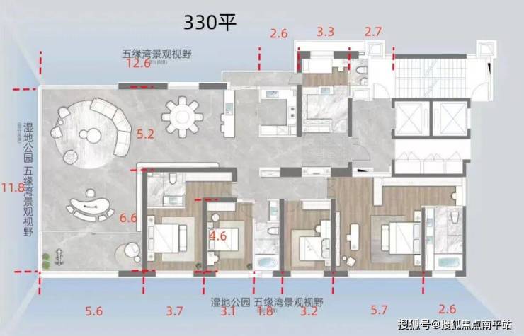 1号院,330平视野如下: