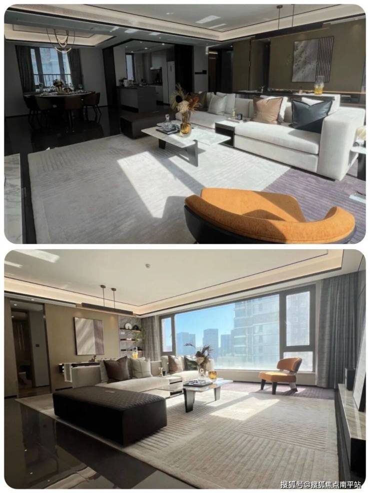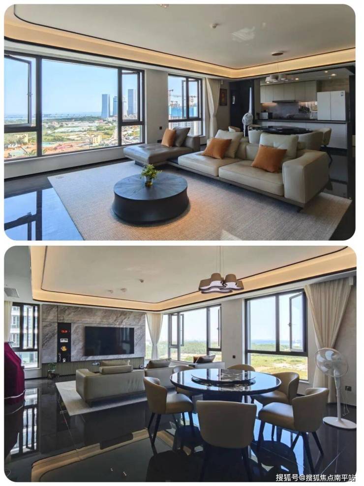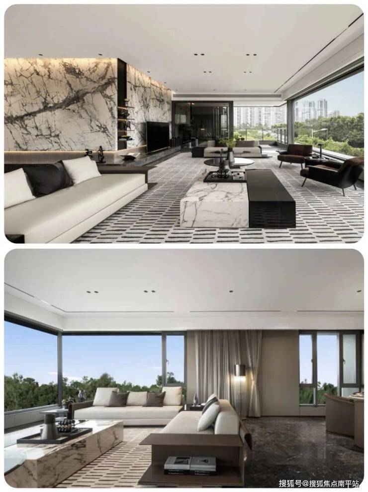 2、270°环绕的“U型”无柱客厅设计,搭配20米长巨幕落地窗,把景观直接装进客厅。