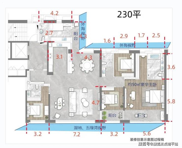 2、7.2米长的客厅,47平超级豪华主套卧。