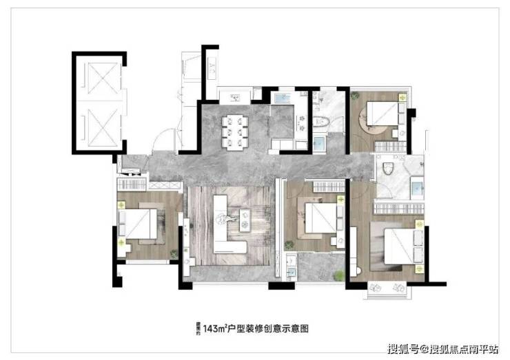 3、口碑不佳的魔方厅143平,体量占比不少。若爆改,则需要牺牲一个房间。