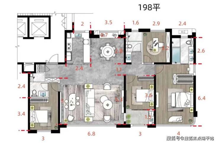 198平,4房-3卫,合计326套,占25.8%。