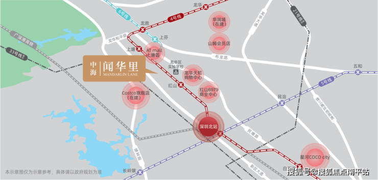 地铁4号线、6号线、33号线(规划中),快速通往全城。深圳北站联通湾区都市圈。