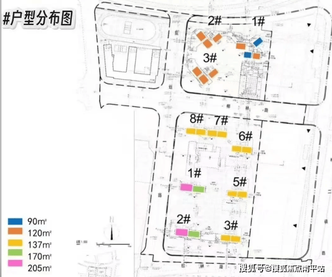 保利天曜分为南北地块开发,其中南地块是板楼设计,共有8栋楼,北地块是塔楼设计,共有3栋楼。