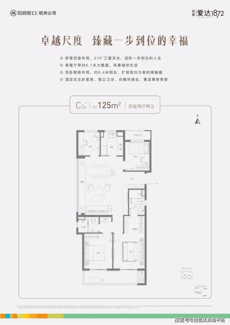 约270°采光面、双卧朝南动静分离、二分离式公卫、主卧豪华套房,不说别的,就冲着图中展示的各项维度,这套大四房就值得用心珍藏。