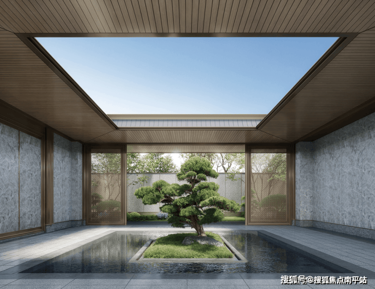 穿过门堂,便是 《千里江山图》般的鲜活场景,凝练 “山、水、林、青”四重画境,让业主归家的每一步能逐渐放松、静下来,感受到闹市幽居的美。项目更是复刻宋代连廊结构, 全区域覆盖风雨连廊,即使阴雨时节,亦可悠然漫步、赏景会友。
