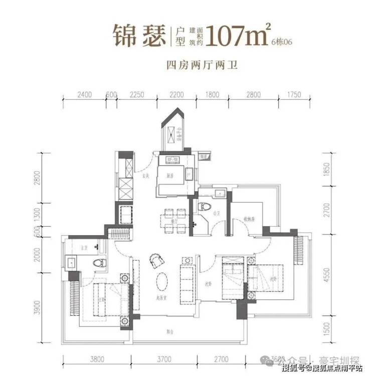 建面约106㎡宽幕人生,以IMAX光幕揽景,以LDKB方厅聚情,更以转角视野与匠心细节,奢享从容生活。• 锦瑟·建面约107㎡4房2厅2卫:双龙抱珠,一线园景,奢阔雅居