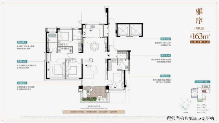 ②全盘纯粹改善四代宅。项目规划7栋高层住宅,户型为建面约163-218㎡四代宅,通过全T2设计和超高使用率,重构世家望族的生活方式图景。