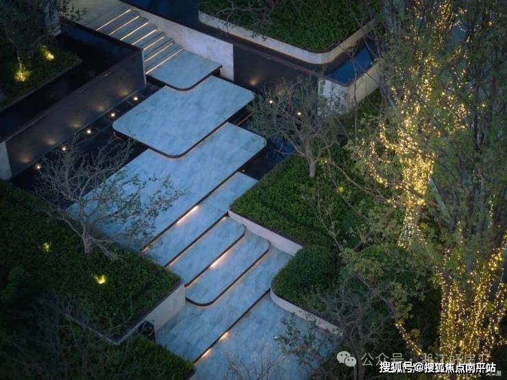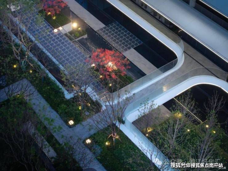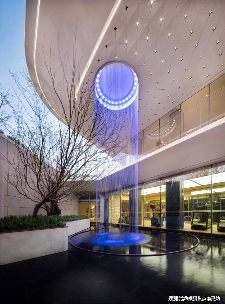 同时,中建信和还首次打造了下沉式庭院空间,丛生乌桕、斜飘红枫、约9m高珠帘水幕,一步一景,景景如画。