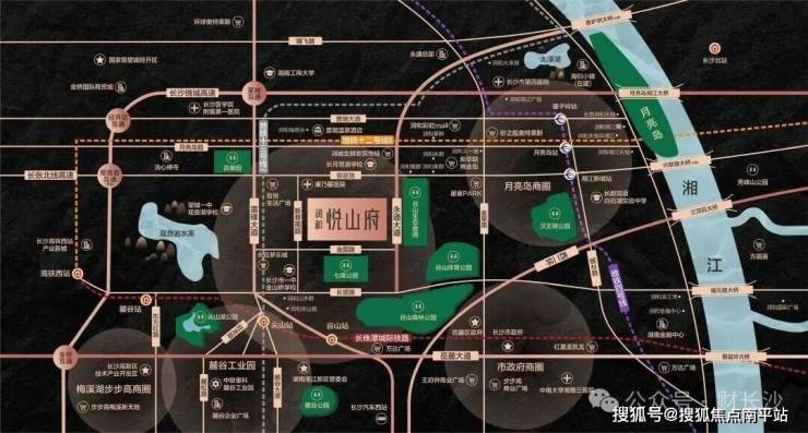 项目位于麓谷核心,南接梅溪湖板块,西接未来的长沙西站区域,东距离市中心也不远,未来可见的地理位置红利