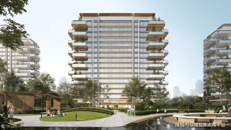 项目规划打造 12 栋 15 至 17 层的小高层住宅,总建筑面积约 17.6 万平方米,容积率 2.8。建筑立面设计取材于 “芝兰玉树” 的意象,以浅灰色石材为底,搭配金属线条勾勒出俊朗挺拔的身姿;顶部则以格栅造型模拟玉树冠层的形态,既赋予建筑鲜明的识别性,也共同构筑起极具标志性的城市风景线。