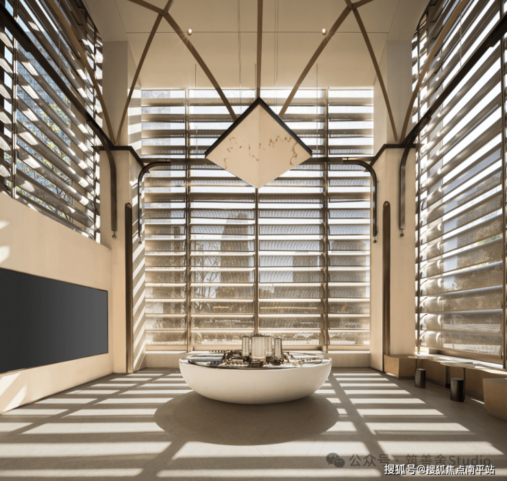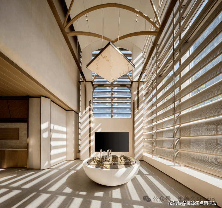 招商的售楼处,别树一帜, 无论是设计上,独特构思,还是材质上,绒面、原木与黄铜的巧妙搭配,带来温润细腻的触感体验。售楼处用柔和的自然光和温馨的室内光相呼应,采用低饱和度的莫兰迪色系和局部鲜明色彩的点缀,营造出丰富的视觉层次。有设计感的家具布局,体现了设计美学,又兼顾了人体舒适哲学。