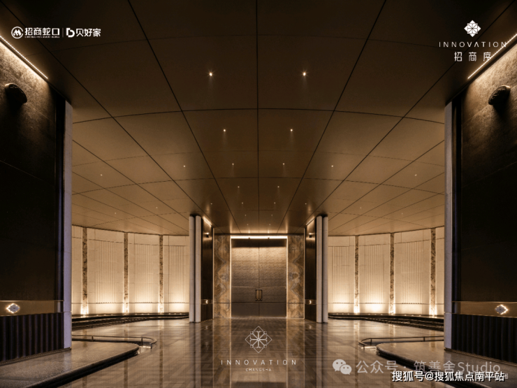 招商序有自己的恢弘大气,高达7米的门庭巍峨耸立于中央,特有金属雨棚犹如巨型扇翼般展开,优美的弧线掠过云端,与53米的圆润立面巧妙衔接,共同撑起宽度达10米的宽敞巍峨门厅,彰显出招商品牌气势与尊崇。