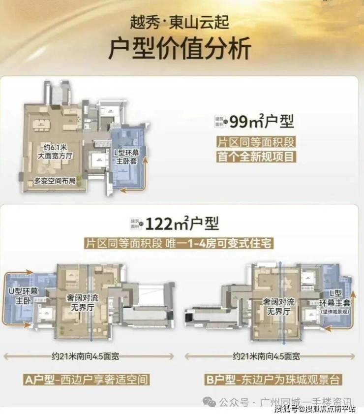 东山云起主推98-139平米三至四房,全部为南向户型。