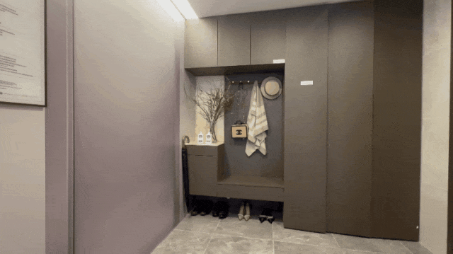 独立电梯厅,在后期的合理利用下,可增加更多功能,孩子的玩具车、女主人的遮阳伞、一家人的鞋柜.....日常收纳轻松满足,美感与实用兼具。