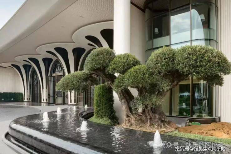 2、这座豪宅矗立着一道宽达90米的“海雀之门”,其以四根单根价值就高达百万的柯林式立柱构建,辅以彩色琉璃窗花、海洋元素、再加上两株西班牙油橄榄与水景,共同映衬整个大门前景,尽显尊贵。而进入大门大堂的第一感官:更是令人震惊,简直豪到没朋友,还以为到了酒店。