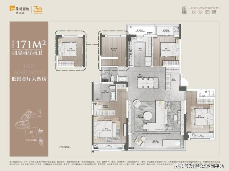 这里以目前在售的建面约171㎡低密宽厅大四房为例: