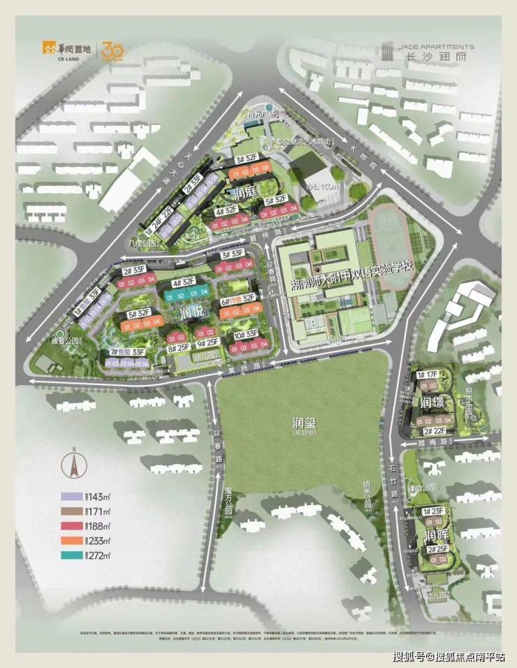 所处的是长沙润府关注度颇高的低密公园组团:三座公园环绕,内部园林串联,景观视野优秀;学校就在不远处,家长可目送式上学;仅规划17-25层住宅,主城少有的低密舒居体验。