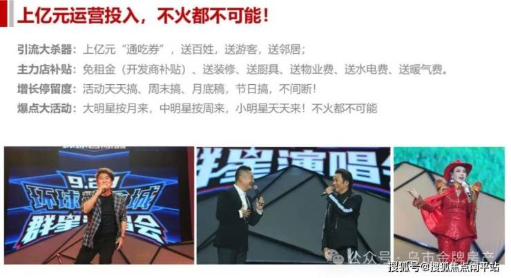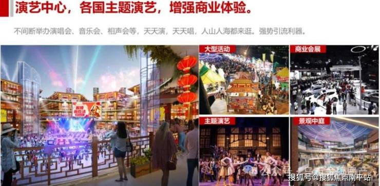 总建筑面积46万方的环球美食街,中心是3000平大型演艺中心、灯光秀明星演艺活动